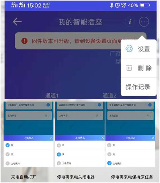 定時(shí)/延時(shí)兩種時(shí)間模式控制,肯有定控制功能,每一路精準(zhǔn)控制設(shè)備狀態(tài),通過(guò)手機(jī)APP添加。