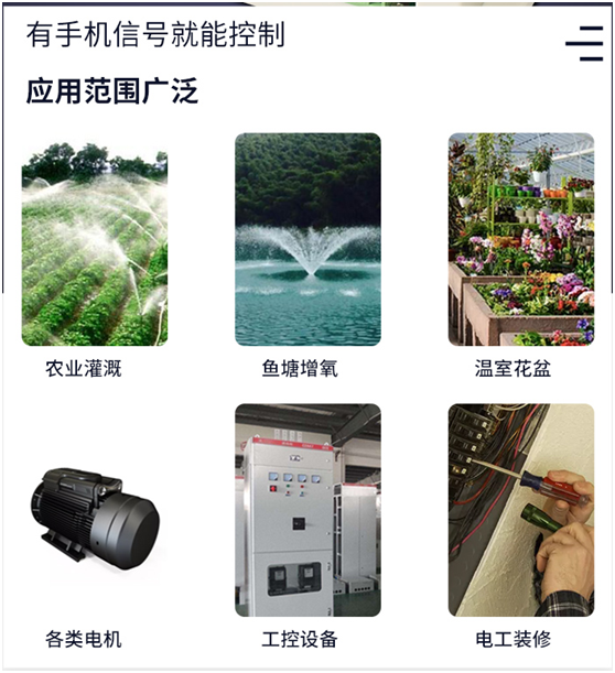 GPRS無(wú)線遙控器開(kāi)關(guān)應(yīng)用范圍廣泛(應(yīng)用領(lǐng)域:農(nóng)業(yè)灌溉、魚(yú)塘增氧、溫室花盆、各類(lèi)電機(jī)、工控設(shè)備、電工裝修等)