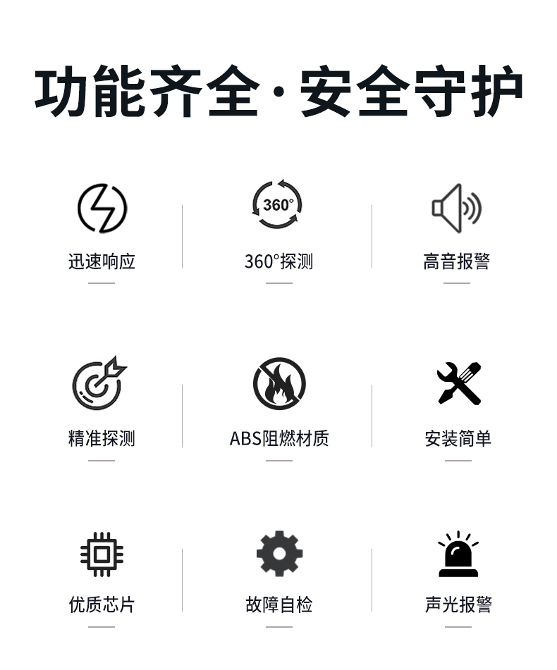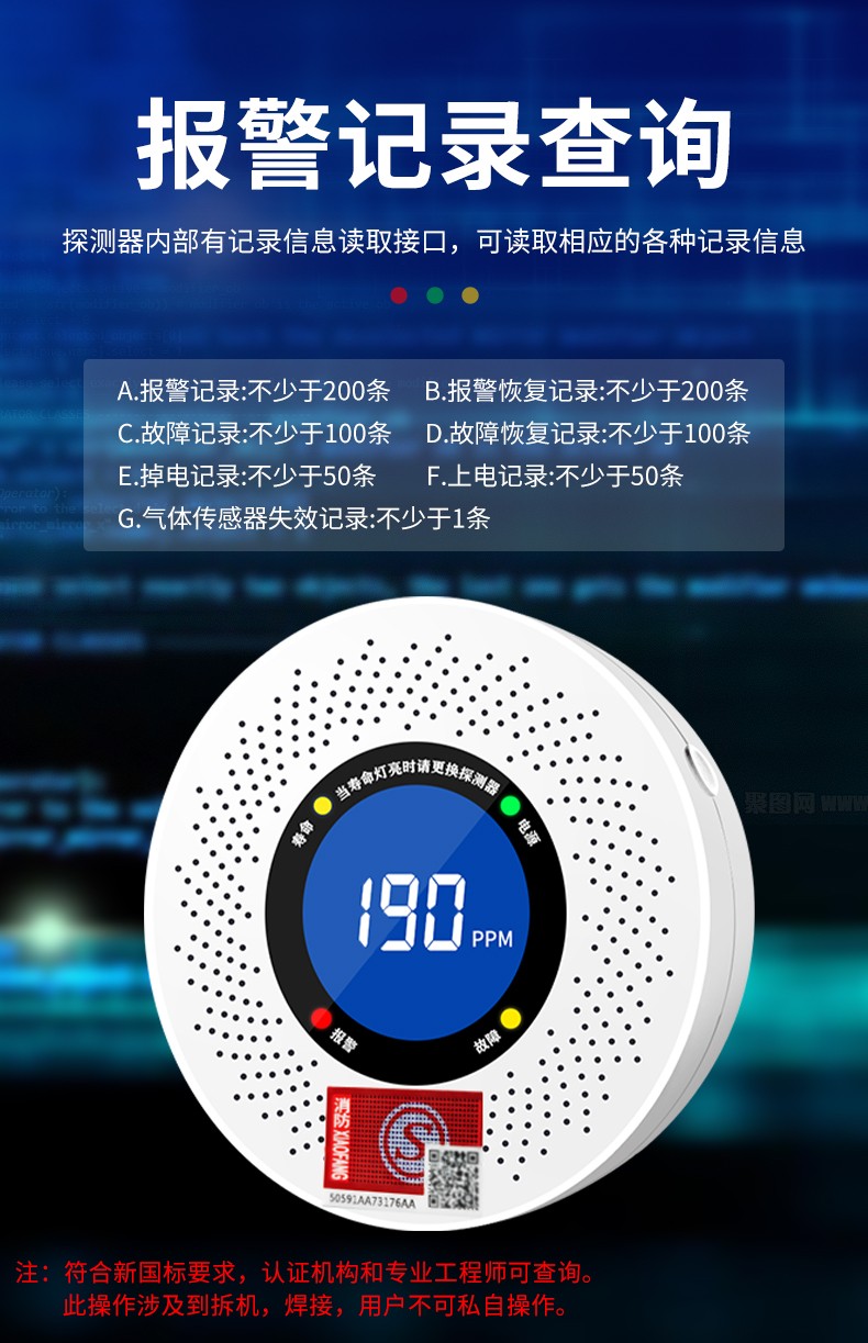 一氧化碳報警器(型號PA-008) 產(chǎn)品規(guī)格 功能特點 資料下載 一氧化碳報警器(型號PA-008)檢測氣體、燒煤、燒柴、燒炭、蜂窩媒、露營封閉環(huán)境、封閉車內(nèi)85分貝報警音量.LED液晶屏幕顯示故障自檢: 綠燈(正常)、黃燈 (故障、需要檢修) 紅燈(氣體濃度超標(biāo)) 5.報警方式:蜂鳴聲提示 6. 產(chǎn)品保險:1000萬承險 7. ABS阻燃材質(zhì)適用場景:適用于廚房、浴室、起居室、火鍋包廂、飯?zhí)玫乳L時間空氣不流通的場所安裝一氧化碳報警探測器
