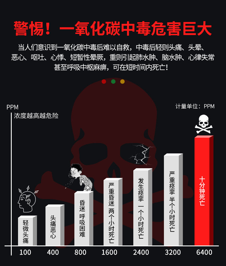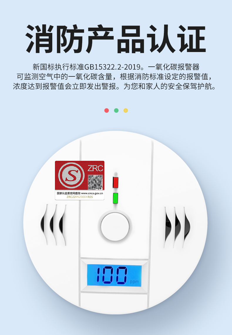 一氧化碳報警器(型號PA-009) 產(chǎn)品規(guī)格 功能特點 資料下載 一氧化碳報警器(型號PA-009)1.檢測氣體、燒煤、燒柴、燒炭、蜂窩媒、露營封閉環(huán)境、封閉車內(nèi)2.85分貝報警音量3..LED液晶屏幕顯示4.故障自檢: 綠燈(正常)、黃燈 (故障、需要檢修) 紅燈(氣體濃度超標(biāo))5.報警方式:蜂鳴聲提示 6. 產(chǎn)品保險:1000萬承險7. ABS阻燃材質(zhì)適用場景:適用于廚房、浴室、起居室、火鍋包廂、飯?zhí)玫乳L時間空氣不流通的場所安裝一氧化碳報警探測器