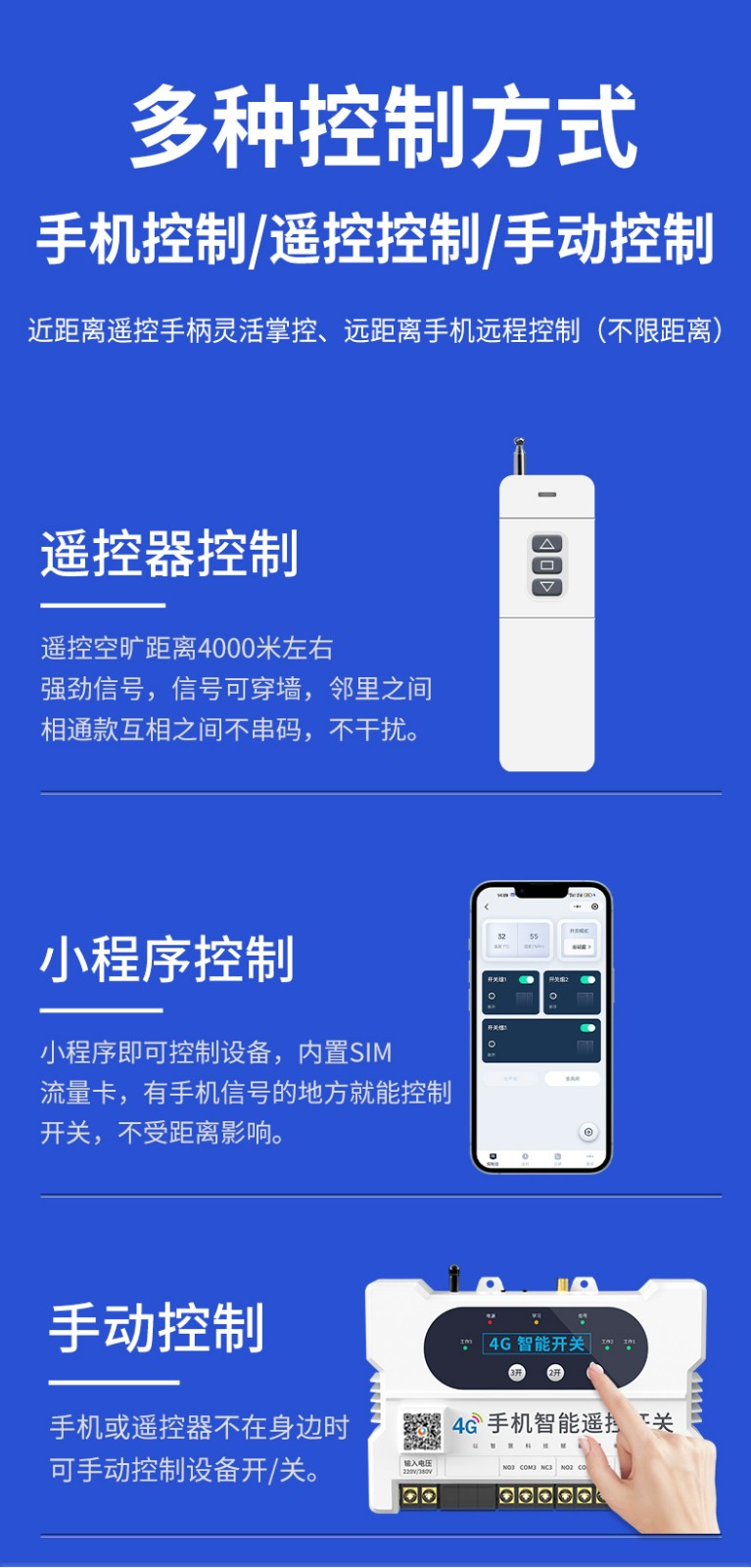 控制方式:手動(dòng)、遙控、手機(jī)